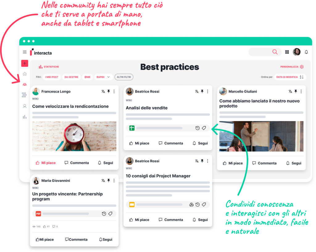 Interacta is the software platform for companies wishing to enhance the pivotal role of people in every interaction, while simplifying knowledge sharing and fostering collaboration.